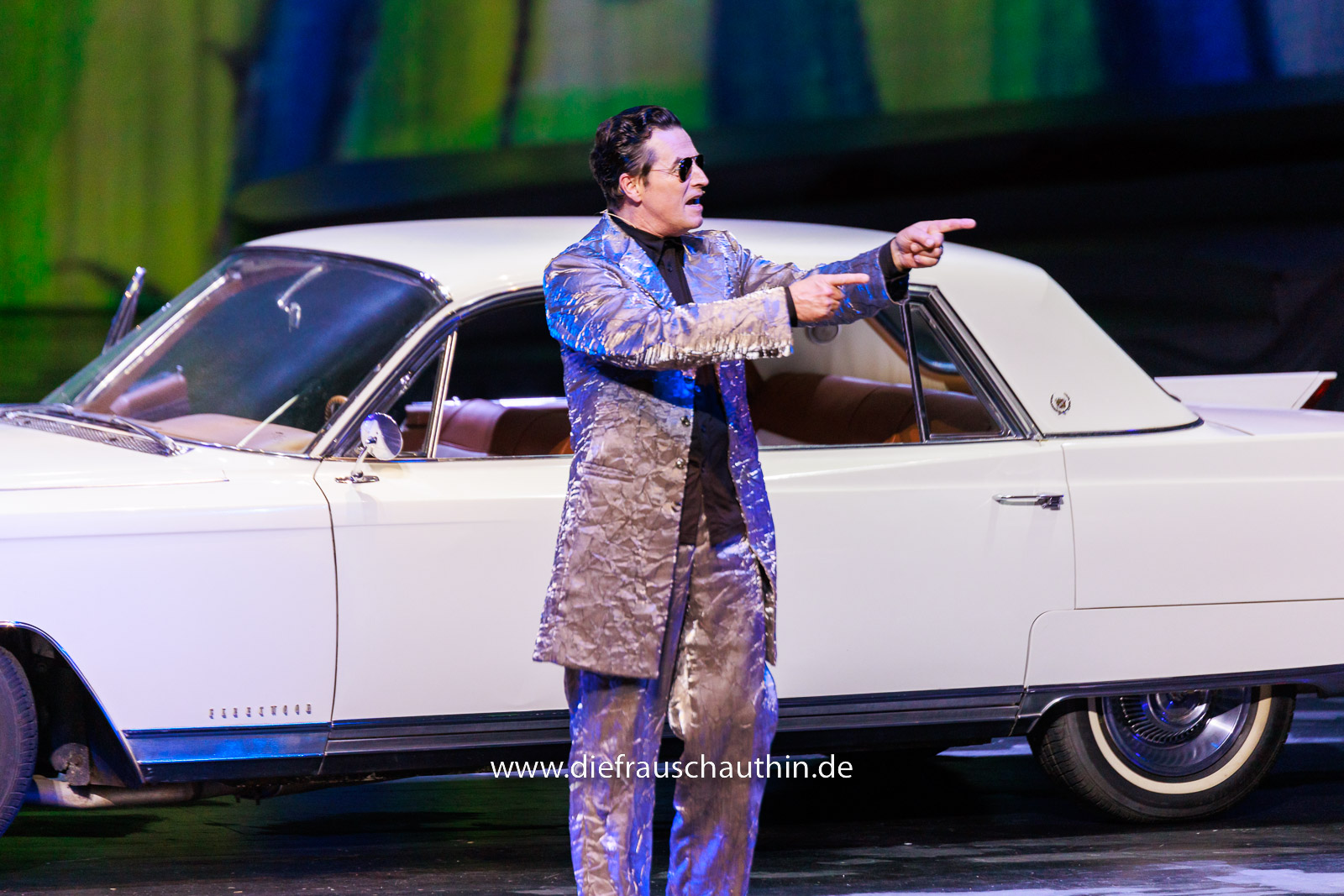In einer lässig anmutenden Rolle ist Alexander Kerbst der Macher in Person. Mit Cadillac und Glitzeranzug sowie Sonnenbrille kommt er daher als eine Mischung aus Falco, den Kerbst ja auch schon lange im Musical verkörpert, und Elvis und dem smarten Gebrauchtwarenhändler.
